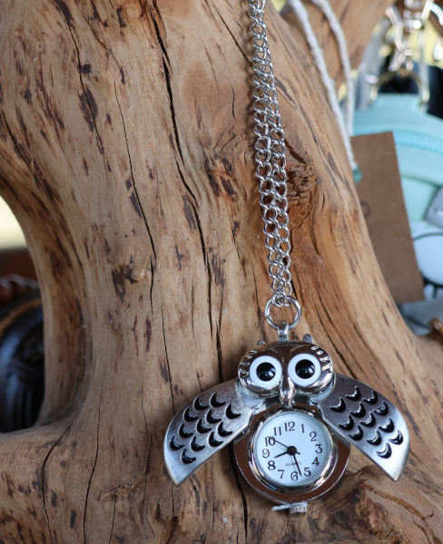 The Owl Pocket Watch is available in four colour variations, including bronze, silver black, silver pink and silver blue.
